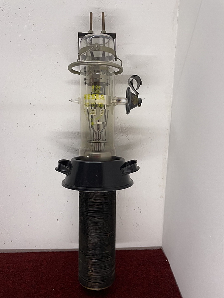 Vzduchem chlazená trioda pro frekvence do 30 MHz. havení 12 V / 60 A, max. anodové napětí 15000 V, anodový výkon 12 kW